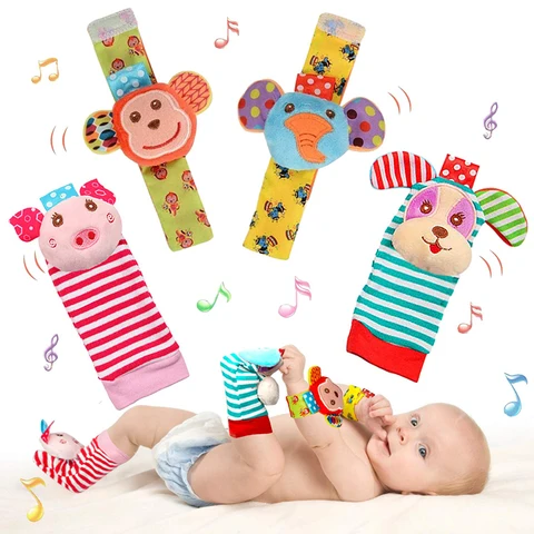 Soft Baby Rattle Toys Wrist Foot Sock Hand Arm Leg Ankle Handheld Rattles for Infants Sensory Plush Animal Toys for Newborn Gift