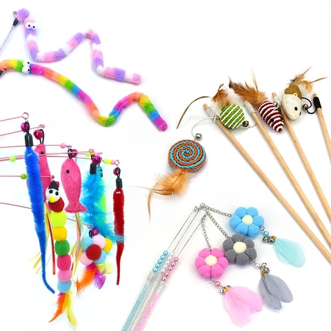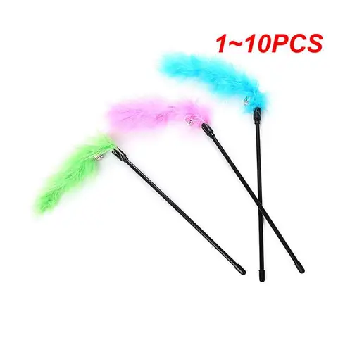 1~10PCS Funny Kitten Cat Teaser Interactive Toy Rod with Bell and Feather Toys For Pet Cats Stick Wire Chaser Wand Toy Random
