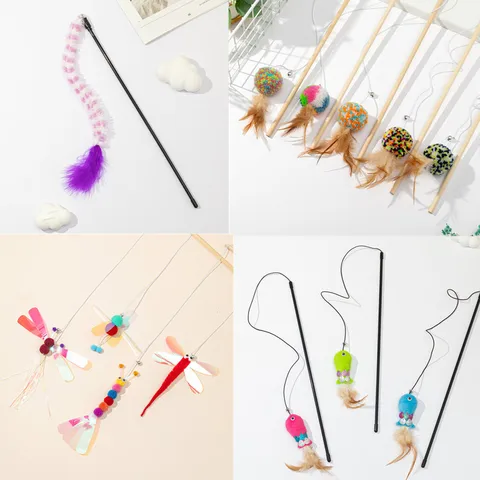 1PC Teaser Feather Toys Kitten Funny Colorful Rod Cat Wand Toys Wood Pet Cat Toys Interactive Stick Pet Cat Supplies
