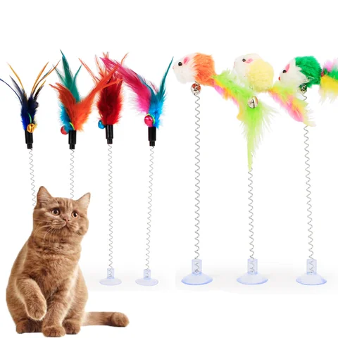 Spring Pet Toy Elastic With Bell Spring Random Color Mouse And Feather Bottom Sucker Pet Cat Toy Pet Product Cat Accessories
