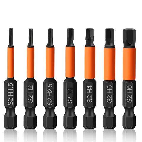 7Pcs 50mm Hex Head Allen Wrench Drill Bit Set Magnetic Metric Hex Bit Set Hex Key Screwdriver Bit Socket Tool