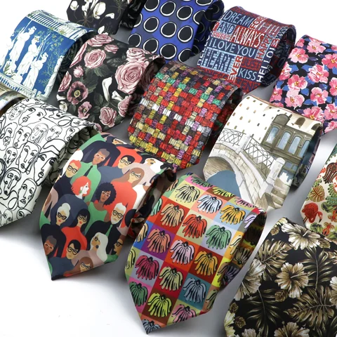 Mens Unique Design Soft Texture Necktie People Face Flower View Pattern Draw Style Tie For Men Party Wedding Novelty Tie Gift