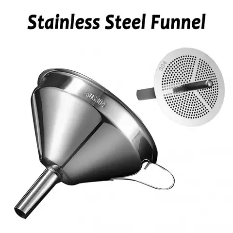 1PC Stainless Steel Funnel Kitchen Funnel For Oil Wine Metal Funnel Detachable Filter Wide Mouth Canning Funnel Kitchen Gadgets