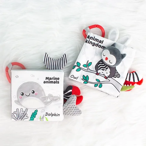 Newborn Sensory Toys For Babies Educational Baby Book Crib Toys Black White Baby Toys Animal Cloth Book Baby Toys 0 12 Months