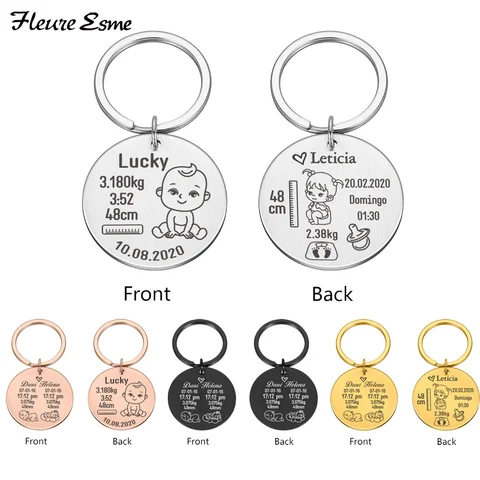 Baby Keychain Mother Father Personalized Gift Customized Name Date of Birth Weight Time Height for Newborn Commemorate Baby Key