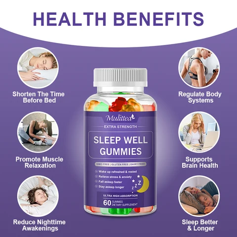 Mulittea Melatonin Gummies Relieve Insomnia and Stress Help Deep Sleep Improve Sleep Quality Delicious Mixed Berry Flavor