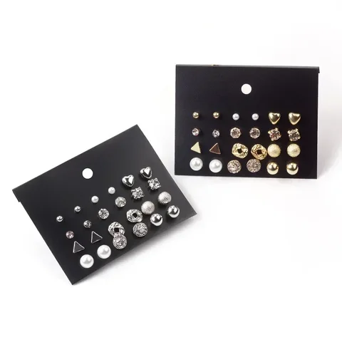 Set of 12 Pairs of Stud Earrings Pearl Zircon Card One Week Stud Earrings Simple Design Stud Earrings