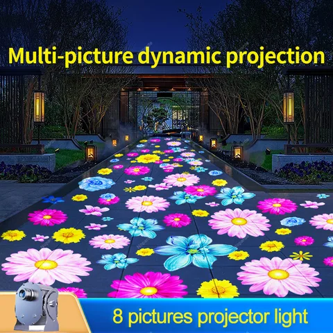 Dynamic 8logos Conversion Multiple Patterns Switching rotate special effect projector Outdoor creative pattern custom spotlights
