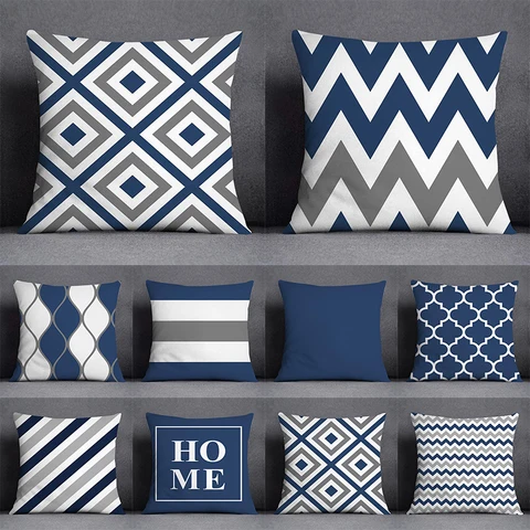 Geometric pattern polyester blue gray pillowcase with soft cushion sofa throw pillow home decoration