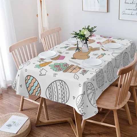 Rabbit Cartoon Easter Eggs For Children Table Cloth Waterproof Dining Tablecloth Kitchen Decorative Party Table Cover