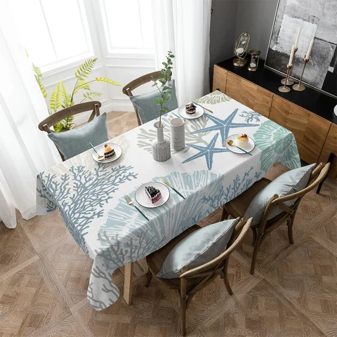 Blue Marine Coral Shells Starfish Tablecloth Rectangular Holiday Table Cover Party Dinner Decor Waterproof Table Cloth