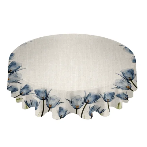 Tulip Flower Round Tablecloth Kitchen Decor Waterproof Table Cloth Dining Coffee Table Cover Picnic Mat