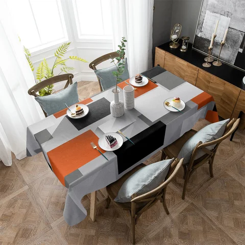Geometric Figures Orange Abstract Tablecloth Holiday Decor Waterproof Rectangular Tablecloths Wedding Decor Table Cover