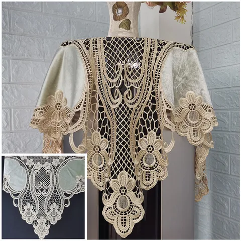 Luxury European Crochet Stitching Velvet Fabric Square Tablecloth Table Mat Set Tableware Oven Air Conditioner Dust Cover Cloth