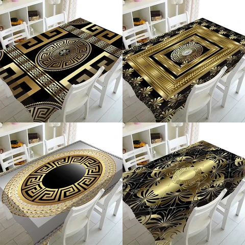 Geometric Luxury Black Gold Greece Rectangle Printed Rectangular Tablecloth For Table And Decoration Home Waterproof Tableclots