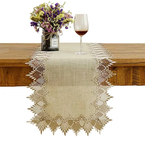 Handmade Simple Modern Primary Color Linen Table Cloth Lace Embroidered Linen Tablecloth Tv Cabinet Dust Cover Home Table Runner