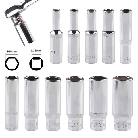 1pc 4-14mm Socket Set Deep Socket Adapter Chrome Vanadium Steel Socket 1/4 Hex Drive Impact Drivers Socket Wrenches Hand Tools