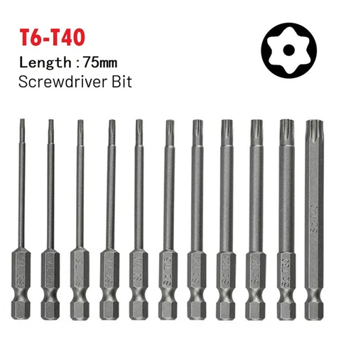 1pc 75mm Torx Screwdriver Bit Magnetic Head Screw Driver Bit 1/4Inch Hex Screwdriver Security Tamper Proof Star Hand Tool