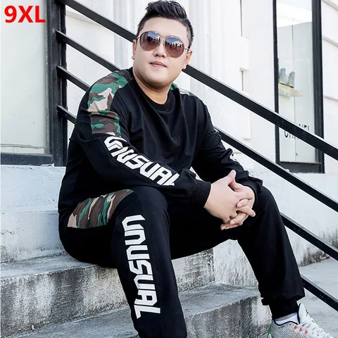 Spring Casual Mens Tracksuit Men's Casual Large Size Jacket + Camouflage Pant 2 Piece Bodybuilding Clothes Men Sports Suits 9XL