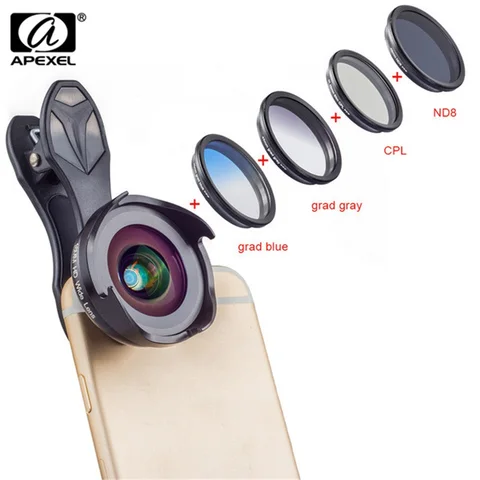 APEXEL Pro Camera Lens Kit 16mm 4k Wide Angle Lens with CPL Filter Universal HD Mobile Phone Lens for iPhone 7 6S Plus Xiaomi