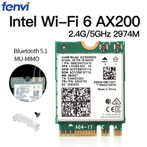 Dual Band Wireless M.2 Wifi6 Intel AX200 2974Mbps Bluetooth 5.1 802.11ax MU-MIMO NGFF Laptop WiFi Card AX200NGW Windows 10