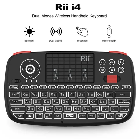 Rii i4 Mini Russian Keyboard 2.4G Bluetooth Dual Modes Handheld Fingerboard Backlit Mouse Touchpad Remote Control for TV Box PC