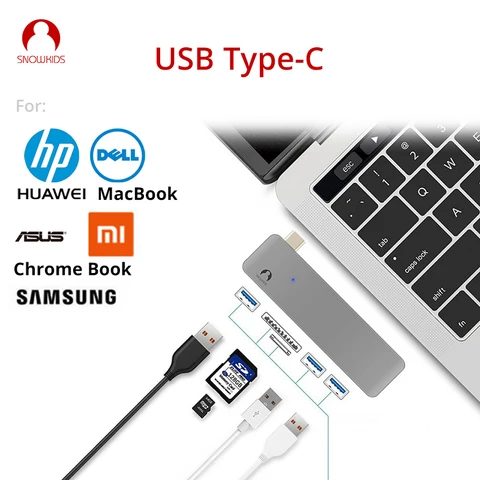 Snowkids USB C Hub Type C to USB3.0 SD TF Card Reader Splitter Dock for Laptop MacBook HP Dell Samsung Asus ZenBook Huawei Mi