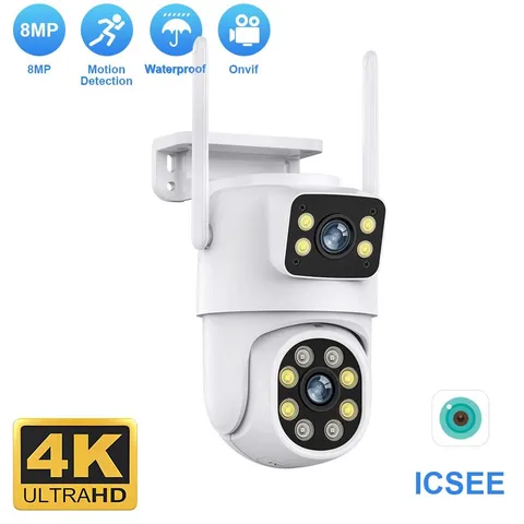 4K HD Dual Lens WIFI Camera 2K Dual Screen PTZ Camera Outdoor Auto Tracking Security Camera Waterproof Surveillance ICSEE