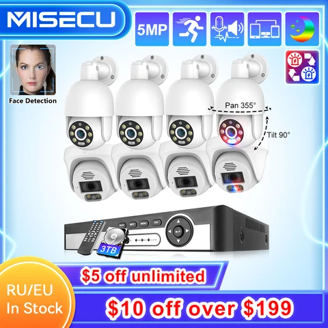 MISECU HD 8CH 5MP PTZ Dome POE Camera Surveillance System Red Blue Light Human Detect Alarm Record CCTV Security Protection Kit