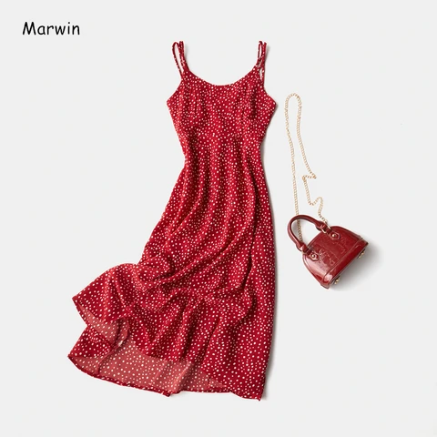 Marwin 2020 New-Coming Spring Summer Holiday Dress Cross Spaghetti Strap Open Back Dot Beach Style Ankle-Length Women Dresses