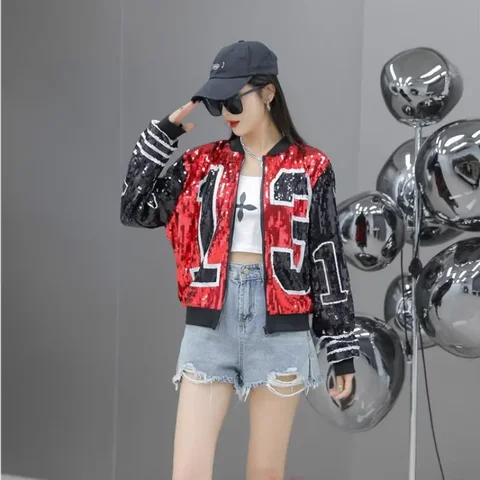 Casual Coat Ladies Long Sleeve New Outerwear Antumn Fashion Women Sequins Bomber Jackets Coats Female Chic Elegant