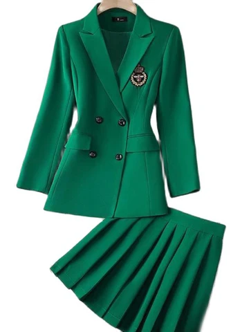 Harajuku Loose Suit Pleated Skirt Two-Piece Set New Spring Autumn Jacket Blazer+Mini A-Line Skirts Loose 2 Piece Suit