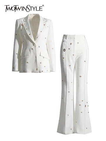 TWOTWINSTYLE Soild Minimalist Sets For Women Turn Down Collar Long Sleeve Patchwork Button Pockets Set Female Fashion Clothing