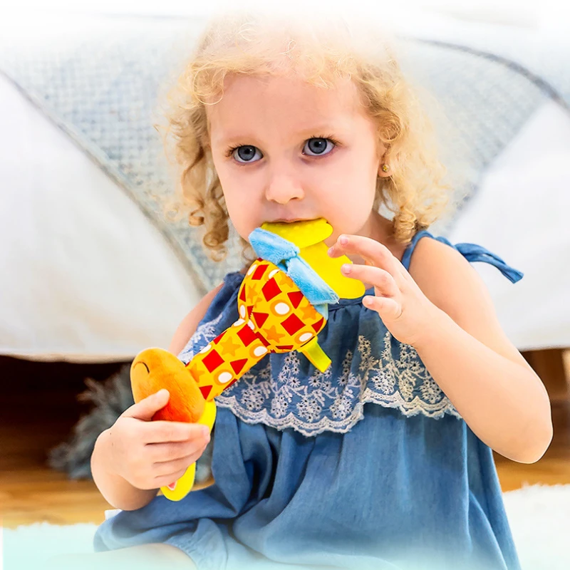 0-12 Months Newborn Baby Toys Cartoon Animal Baby Plush Rattle BB Stick Mobile Bell Toy Infant Toddler Early Educational Toys