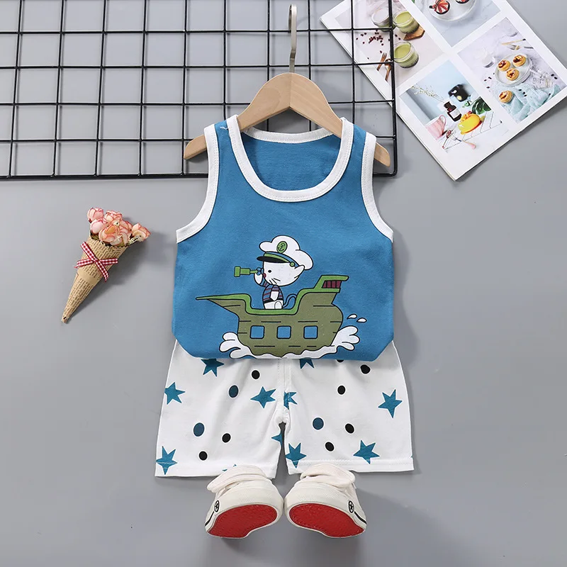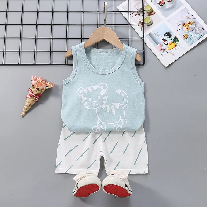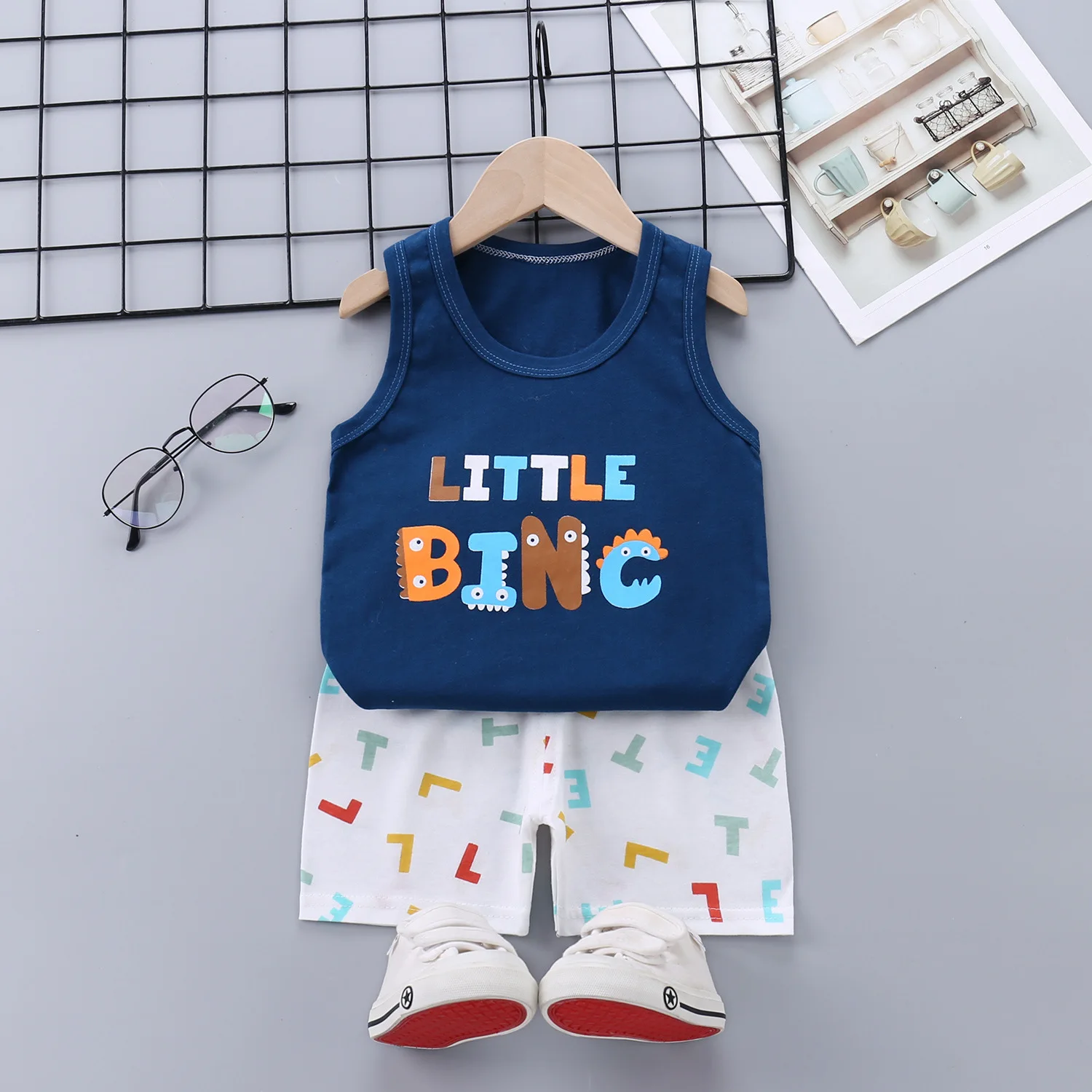 1-5Y Baby Boy Clothes Sleeveless Vest+Short Pant 2Pcs Set Toddler Girl Suit Cartoon Infant Sport Outfit Kid Tracksuit A1034