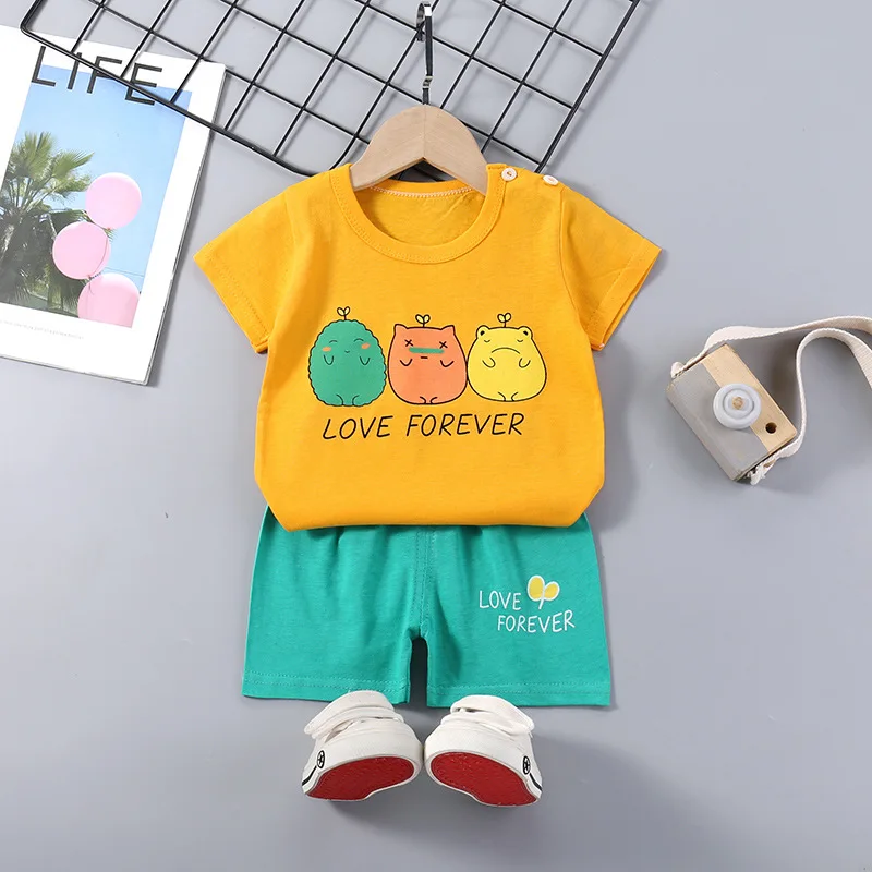 1-5Y Baby Clothes Set Cartoon Short Sleeve Tops+Pant 2Pcs Girl Suit Toddler Boy Outfit Kid Tracksuit Casual Infant Outwear A1017