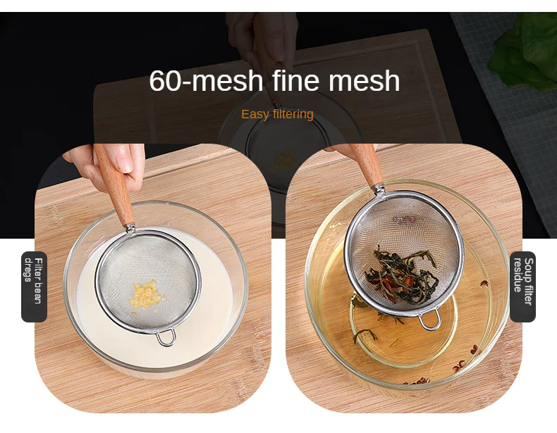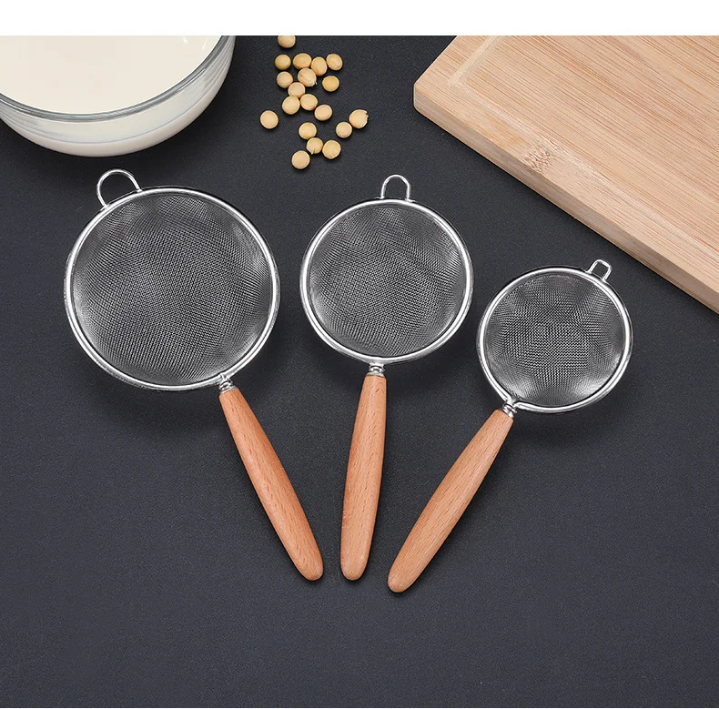 1 Pc Stainless Steel Colander Wooden Handle Fishing Spoon Household Kitchen Filter Mesh Small Net Leak Fried Noodle Colander