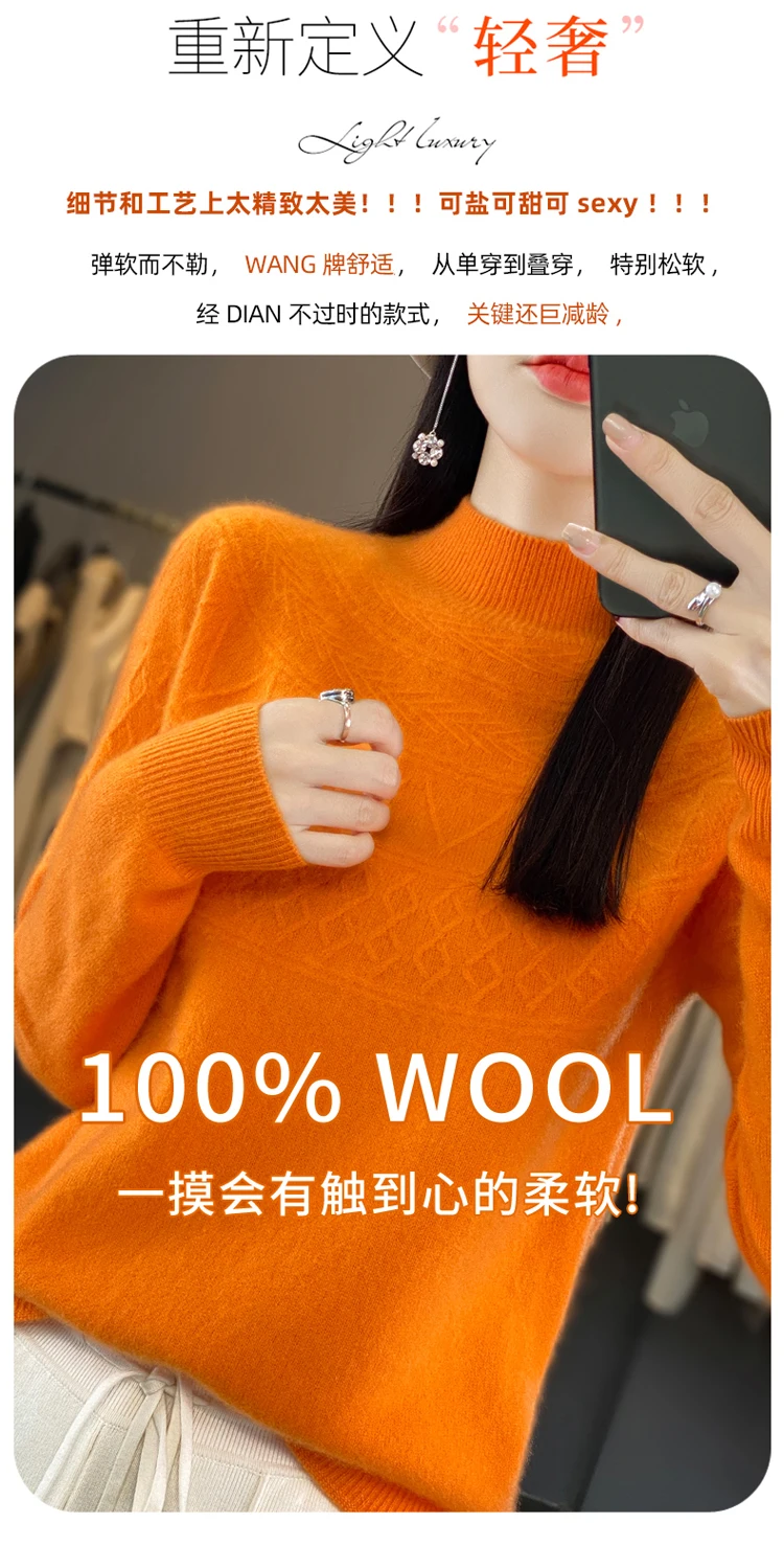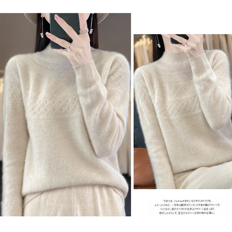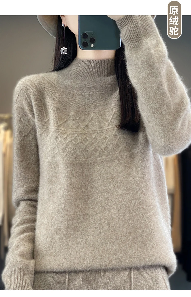 100% merino wool cashmere sweater women’s knitting sweater high neck long sleeve pullover autumn and winter clothing warm top