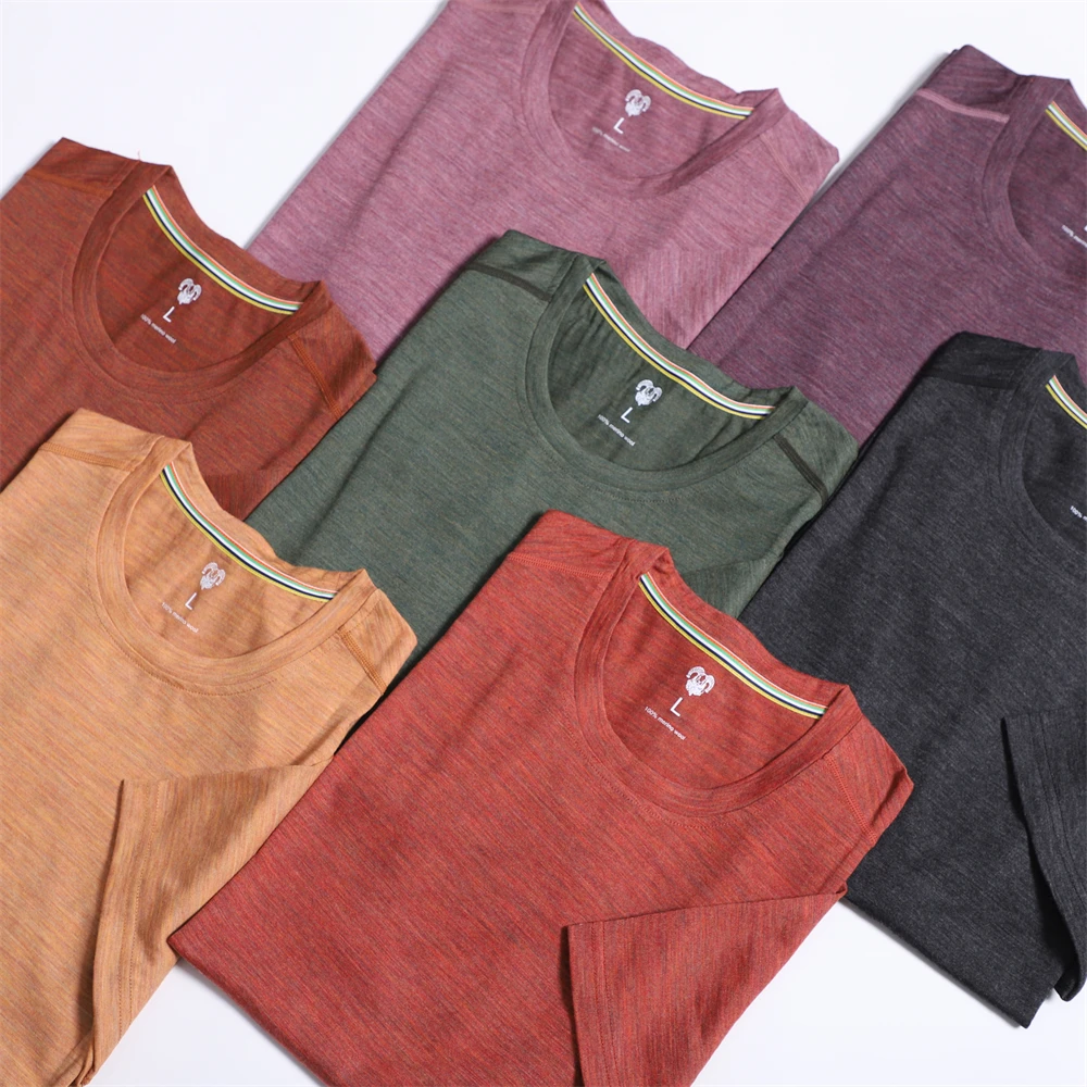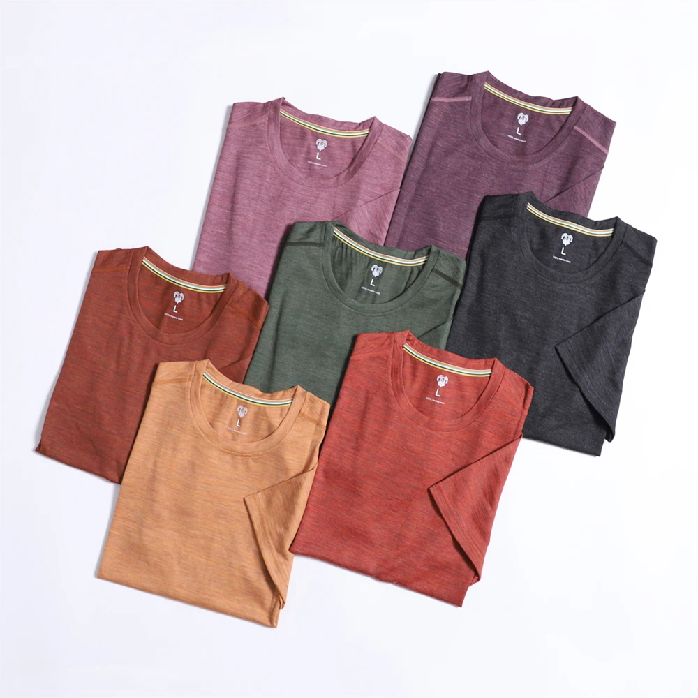 100% Merino Wool T Shirt Men Merino Wool Base Layer Undershirt Lightweight Man Outdoor Short Sleeve Tee Hiking Traveling Running