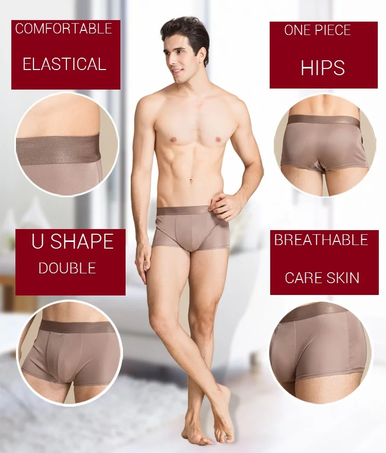 100% Pure Silk Men’s Boxers Male U Shape Cutting Underpants Men Mid Waist Man Solid Antibacterial Breathable Sexy Underwears
