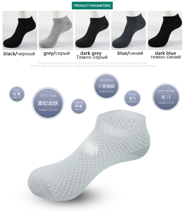 10Pairs/lot Bamboo Fiber Men Socks Large Size Short Ankle Business Black Male Meias Socks Breathable Men Plue Size EU38-48