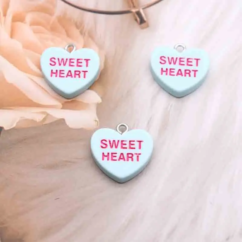 10pcs 19*18mm Cute Mini Heart Charms With Words BE MINE HUG ME SWEET HEART For DIY Earrings Necklace Jewelry Accessories Finding