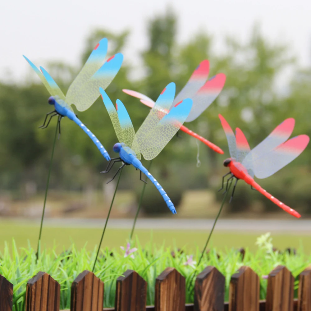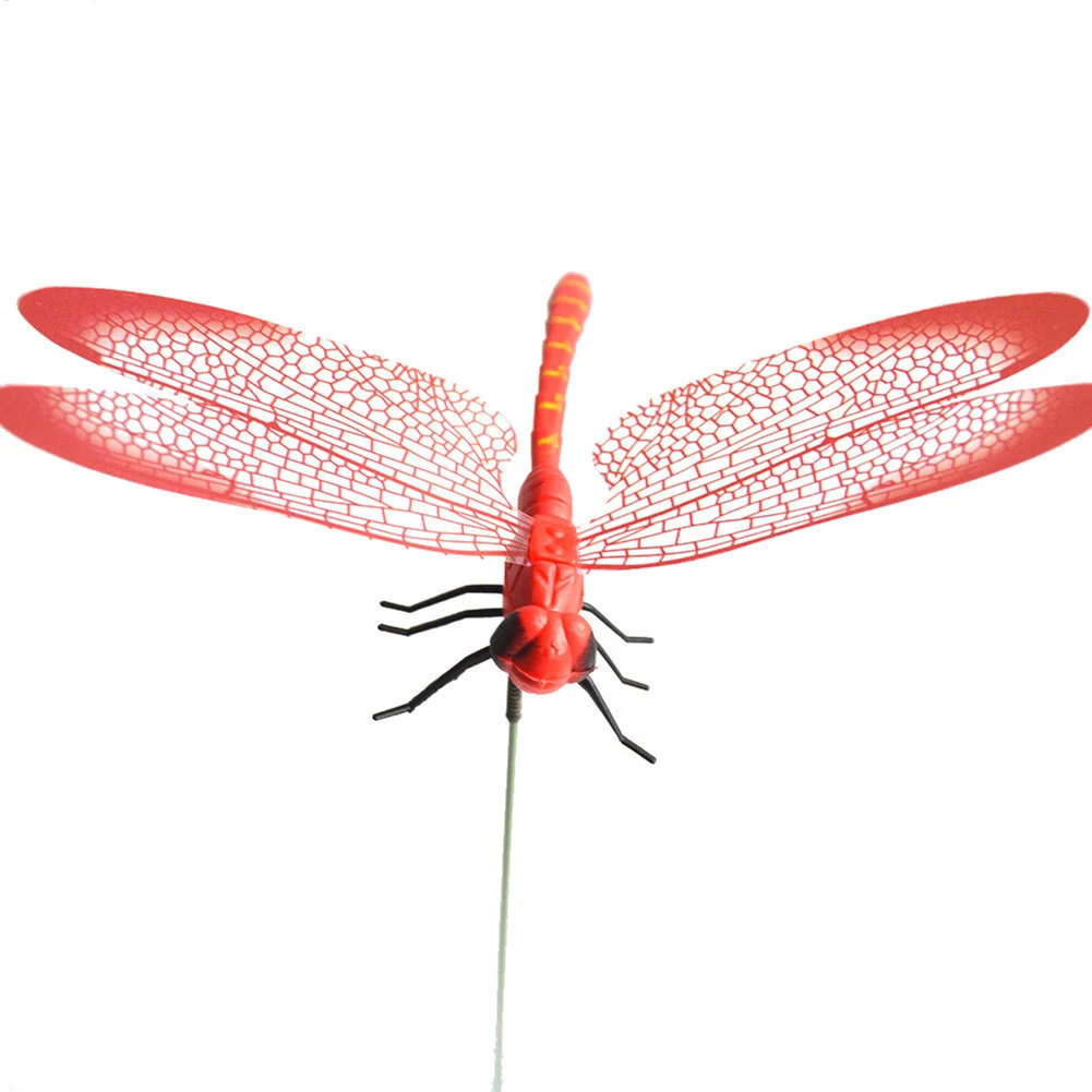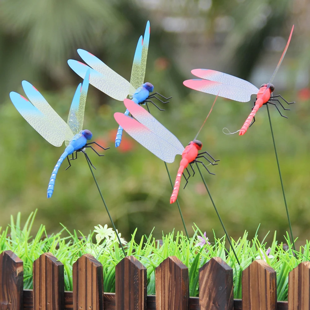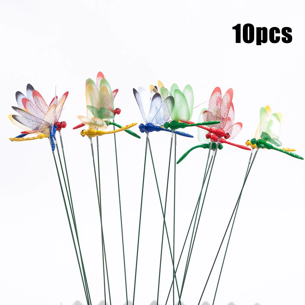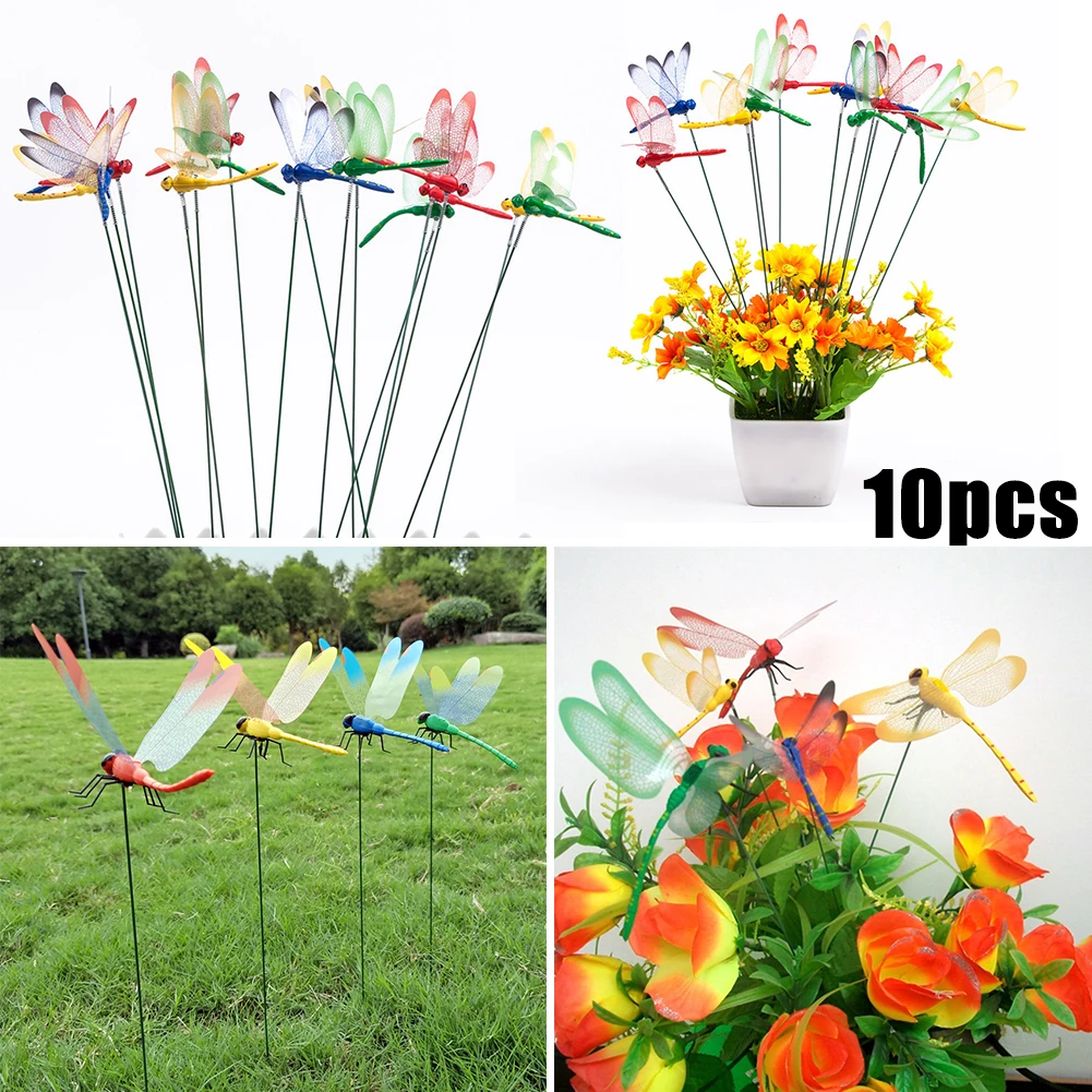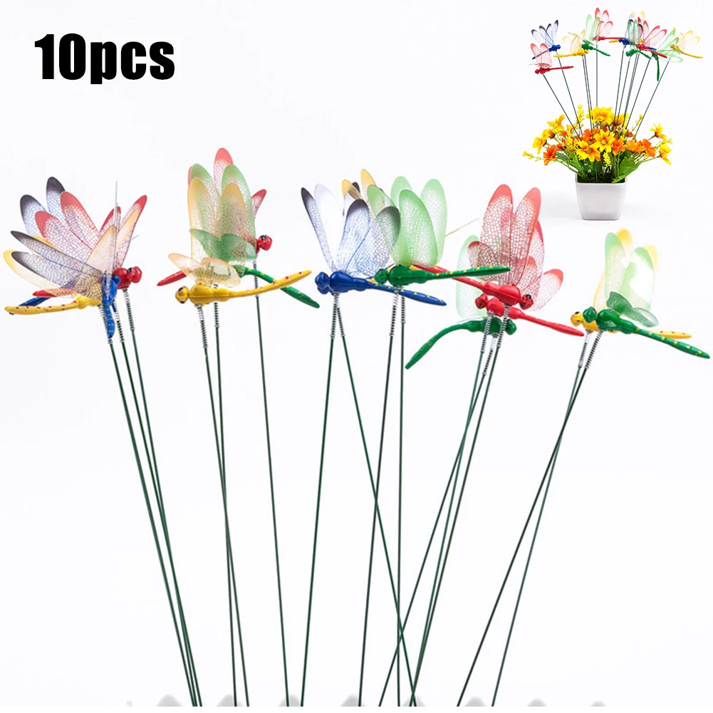 10PCS Dragonfly Stakes Yard Art Outdoor 3D Simulation Decorative Stakes Yard Plant Lawn Decor Stick Flower Pot Garden Decor