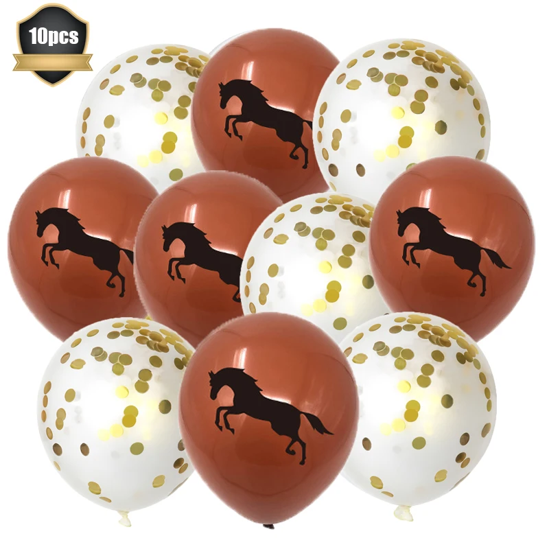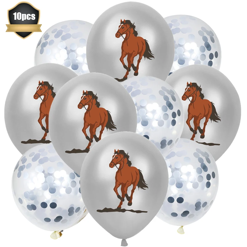 10pcs Horse Latex Balloon 12inch Confetti Sequin Balloons Horse Racing Theme Birthday Party Baby Shower Cowboy Decoration Globos