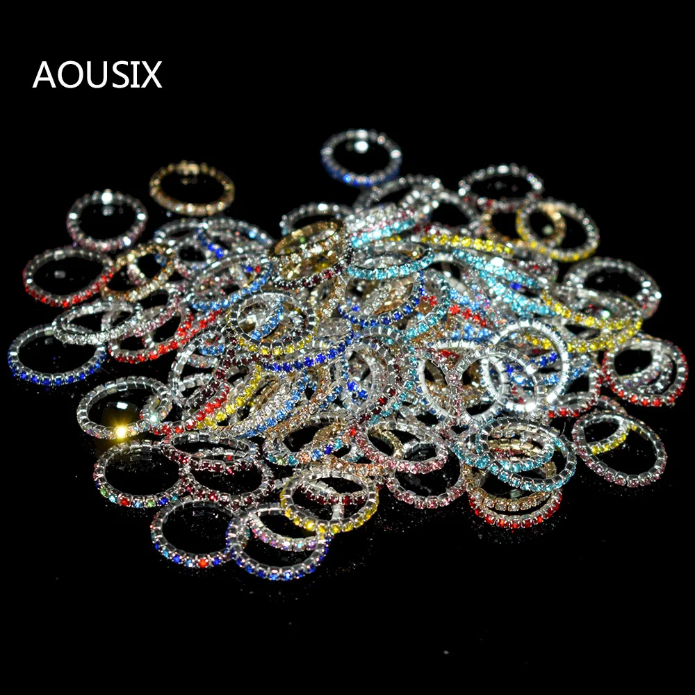 10pcs Korean Version Multicolor Rhinestone Ring Ladies 1Row Mixed Color Crystal Ring Crystal Stretch Ring Toe Ring Party Jewelry