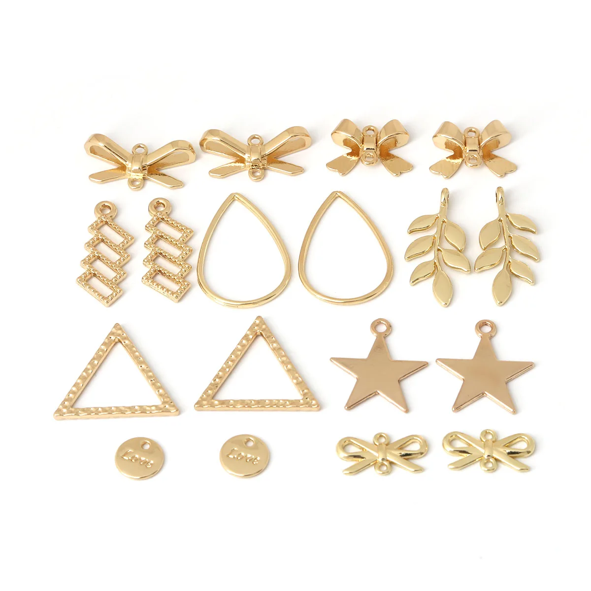 10pcs Metall Charms Leaf Star Heart Knot-bow Geometric earrings necklace handcraft DIY Jewelry findings accessories