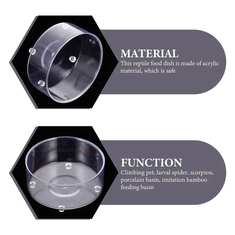This Reptile Feeder is made of acrylic material, durable and safe to use, no odor and no harm to your pet. And it’s not easy to break, long-lasting to use. Easy to clean, you can wash this feeding dish for reptile with water or wipe it with a cloth, very convenient. High temperature and wear resistant, making the bowl can serve your pet for longer.