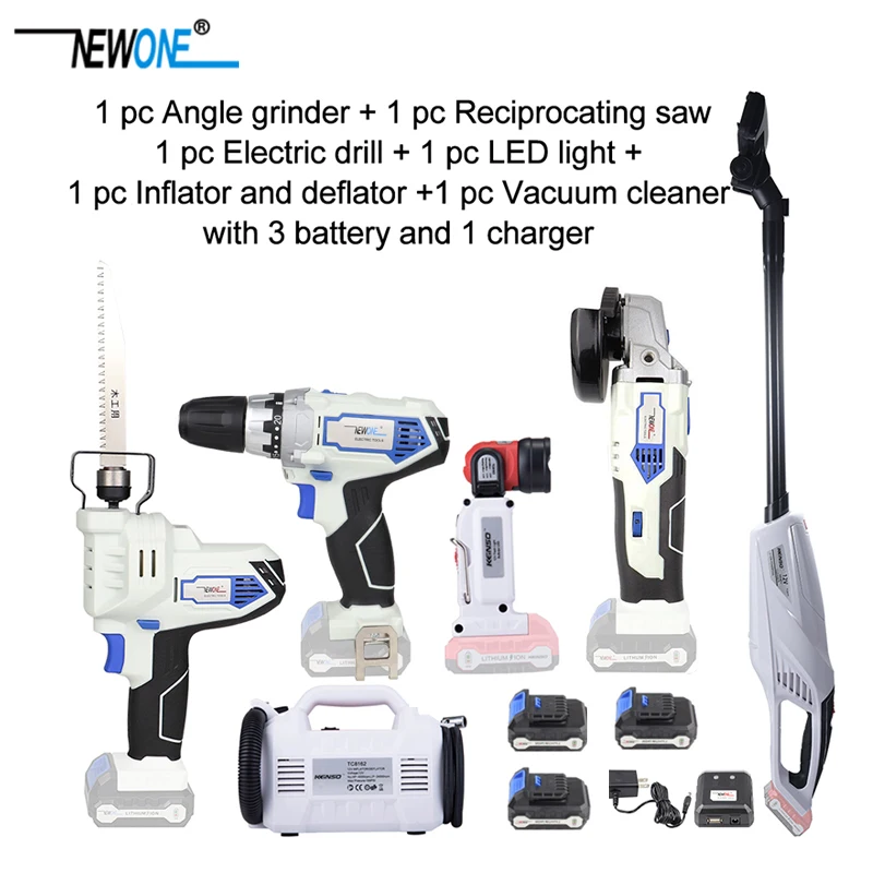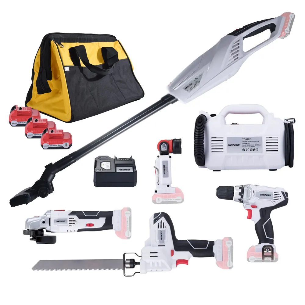 12V Cordless Electric Power Tool Combo Kit Drill/Screw driver angle grinder reciprocating saw LED flashlight inflator/deflator