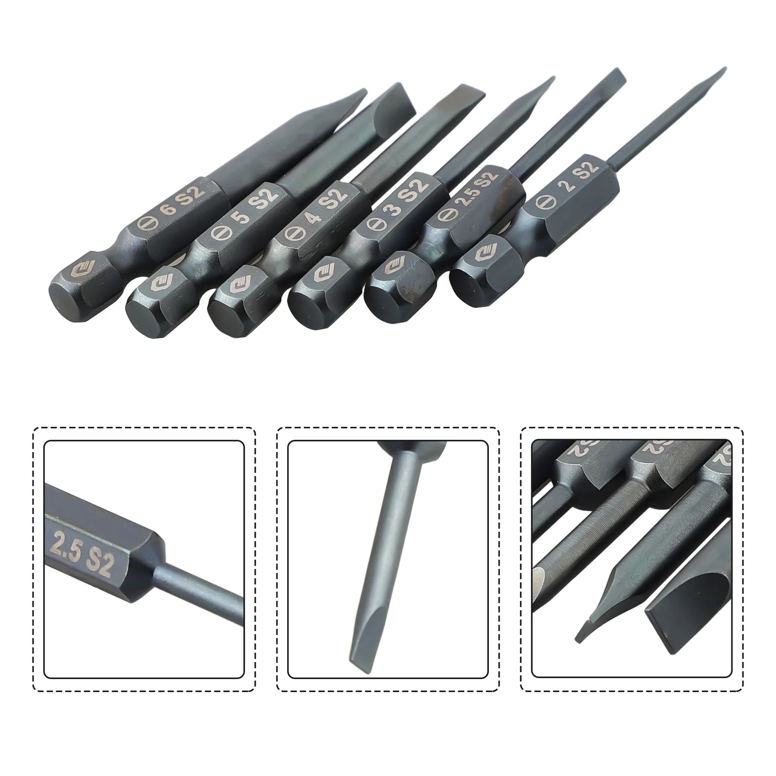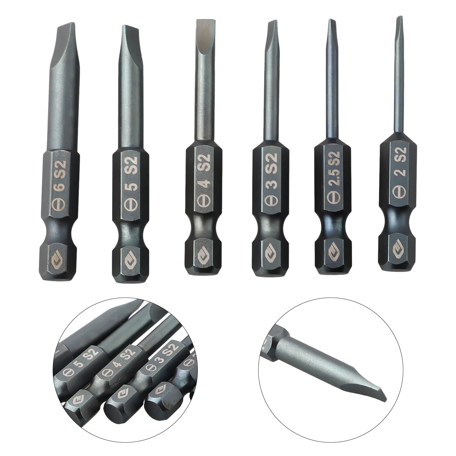 1pc 50mm Slotted Screwdriver Bit Magnetic Flat Head SL2.0 SL2.5 SL3.0 SL4.0 SL5.0 SL6.0 1/4 Inch Hex Shank Screw Drivers Bits