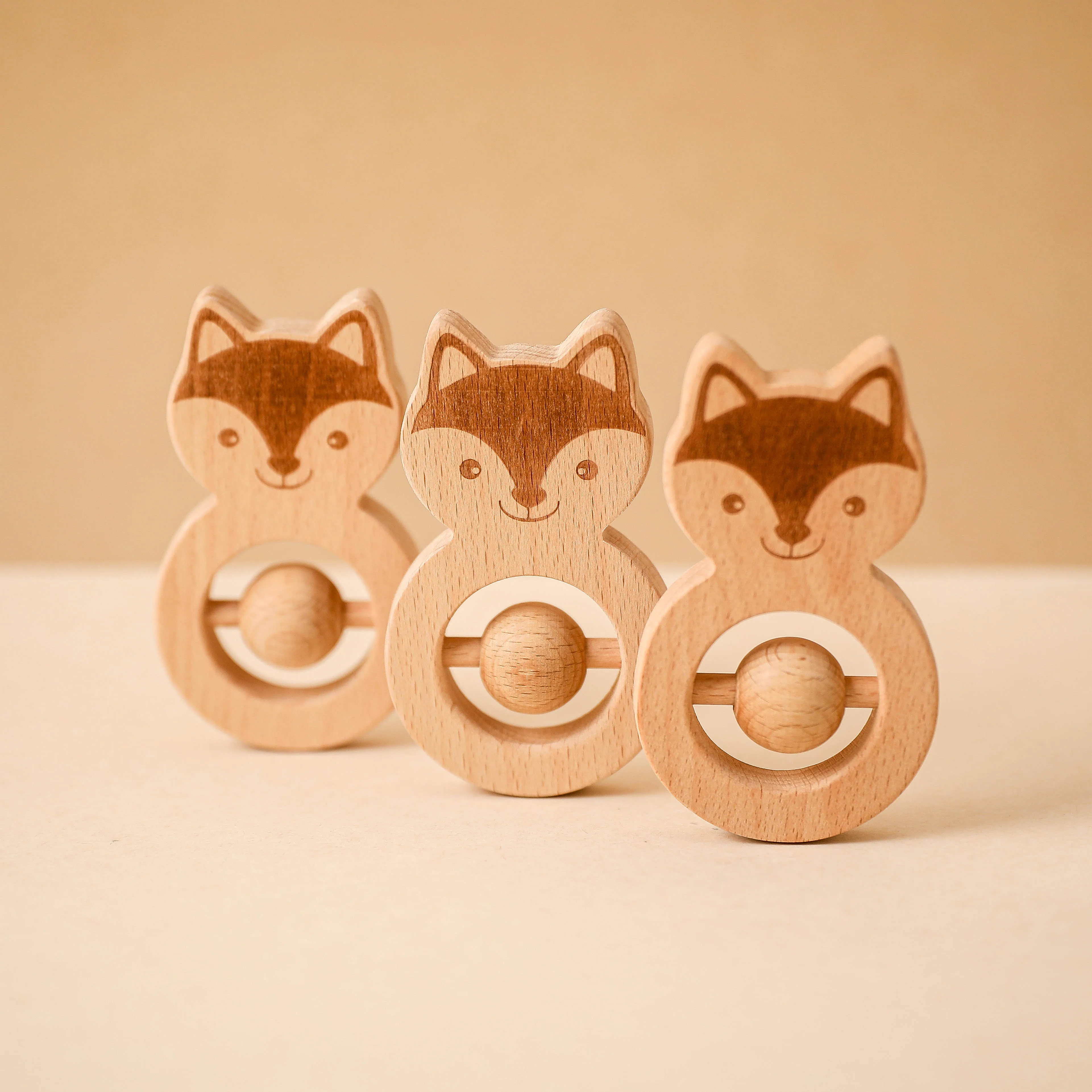 1PC Cartoon Animal Rattle for Kids Soothing Sleep Wooden Rattle Teether Musical Handbell Baby Attetion Training Educational Toy